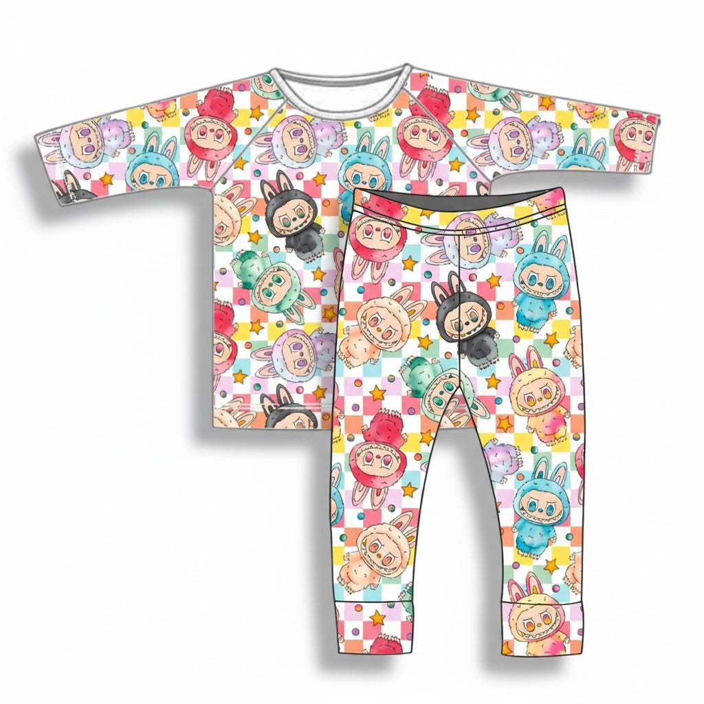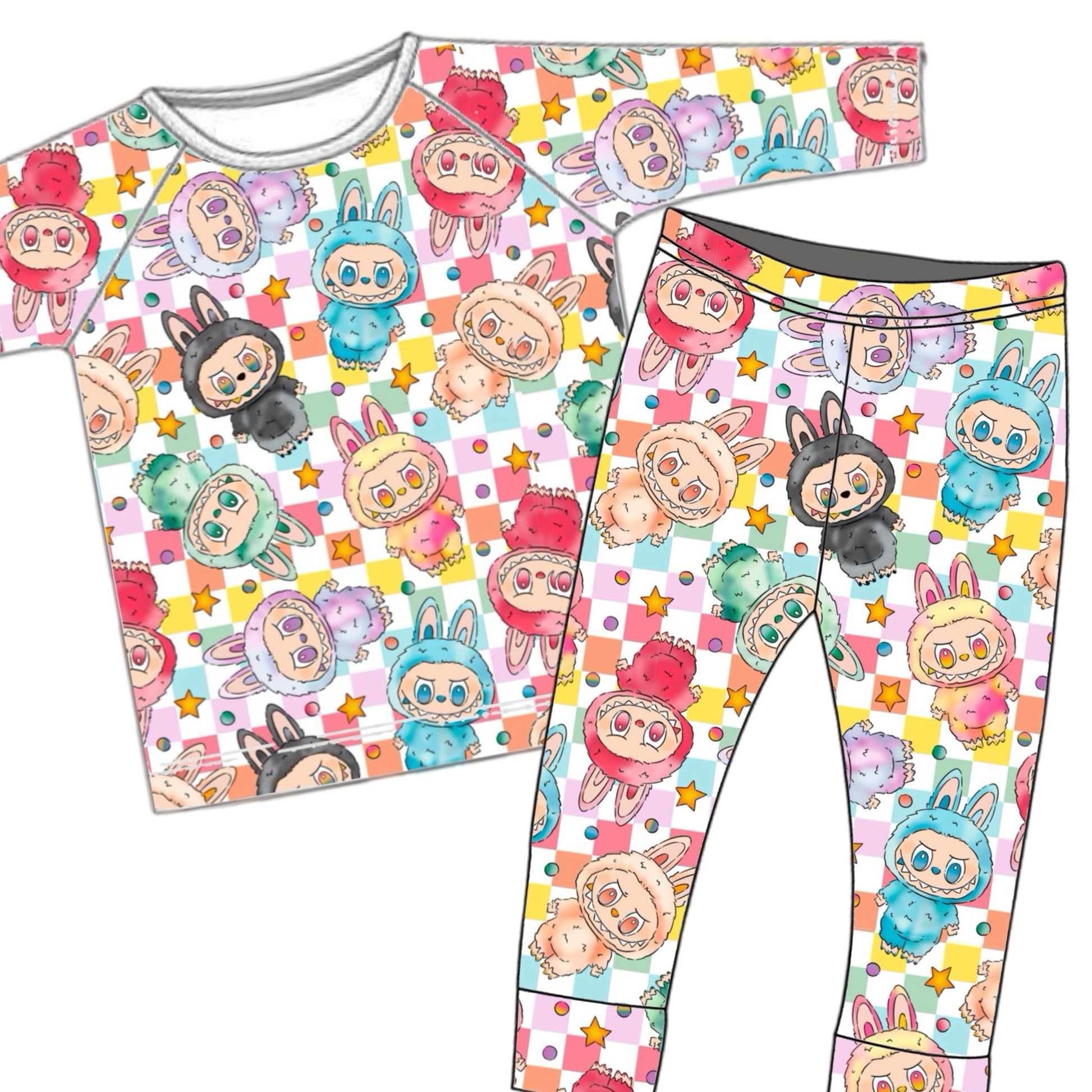 This listing is for one set (top and bottom) of stretchy ribbed jersey jammies. From the menu you will have to choose from a SHORT sleeve raglan style top or LONG sleeve raglan style top. I serge all seams for added durability and strength. These jammies are not pre-washed so please see the washing instructions below for proper care. Heat will make the fabric colors fade, so no hot water and no dryer heat is very important to keep colors as vibrant as possible!